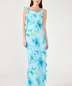 Women’s Dresses Perfect Stranger Moonlit Ruffle Maxi Dress Blue Print