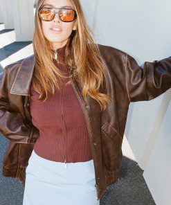 Women’s Dresses Perfect Stranger Washed Maxx Pu Bomber Brown
