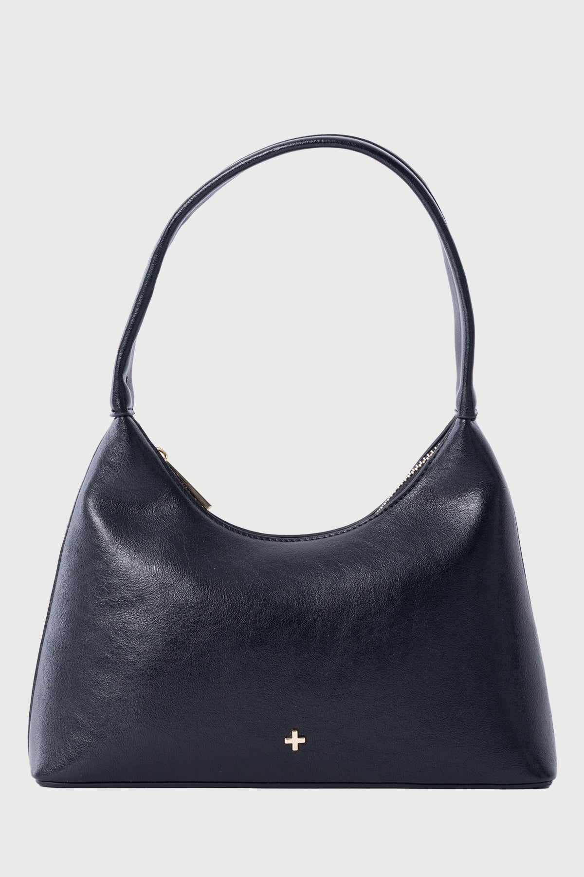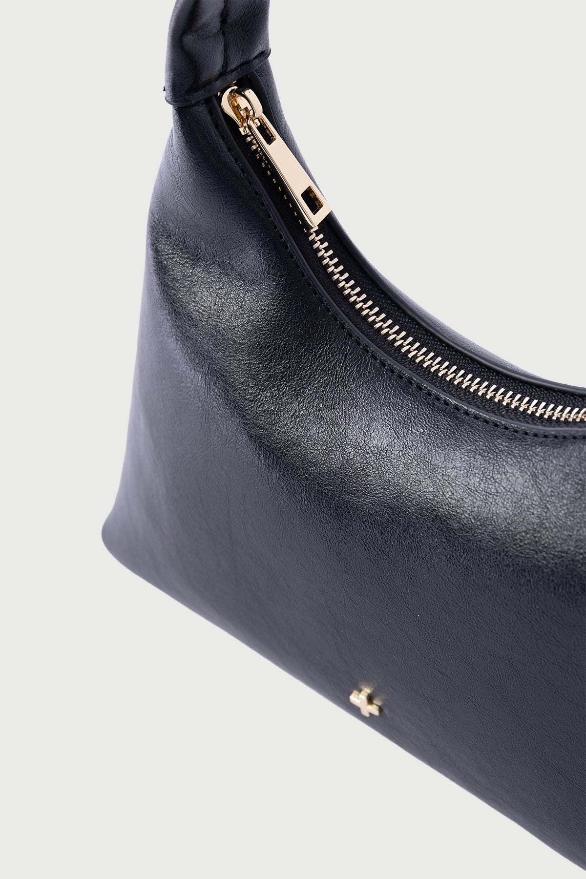 - Small shoulder bag with a main compartment secured with a zipper. Two internal pockets: one with a zipper and one open.