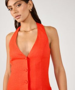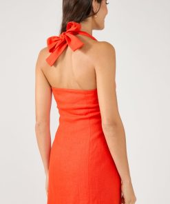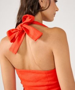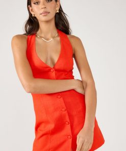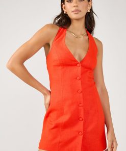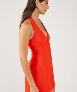 Women’s Dresses Perfect Stranger Menorca Halter Button Linen Mini Dress Red