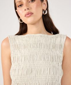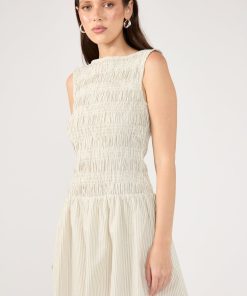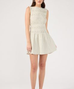Women’s Dresses Perfect Stranger Shirred High Neck Mini Dress White Stripe | White Stripe