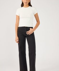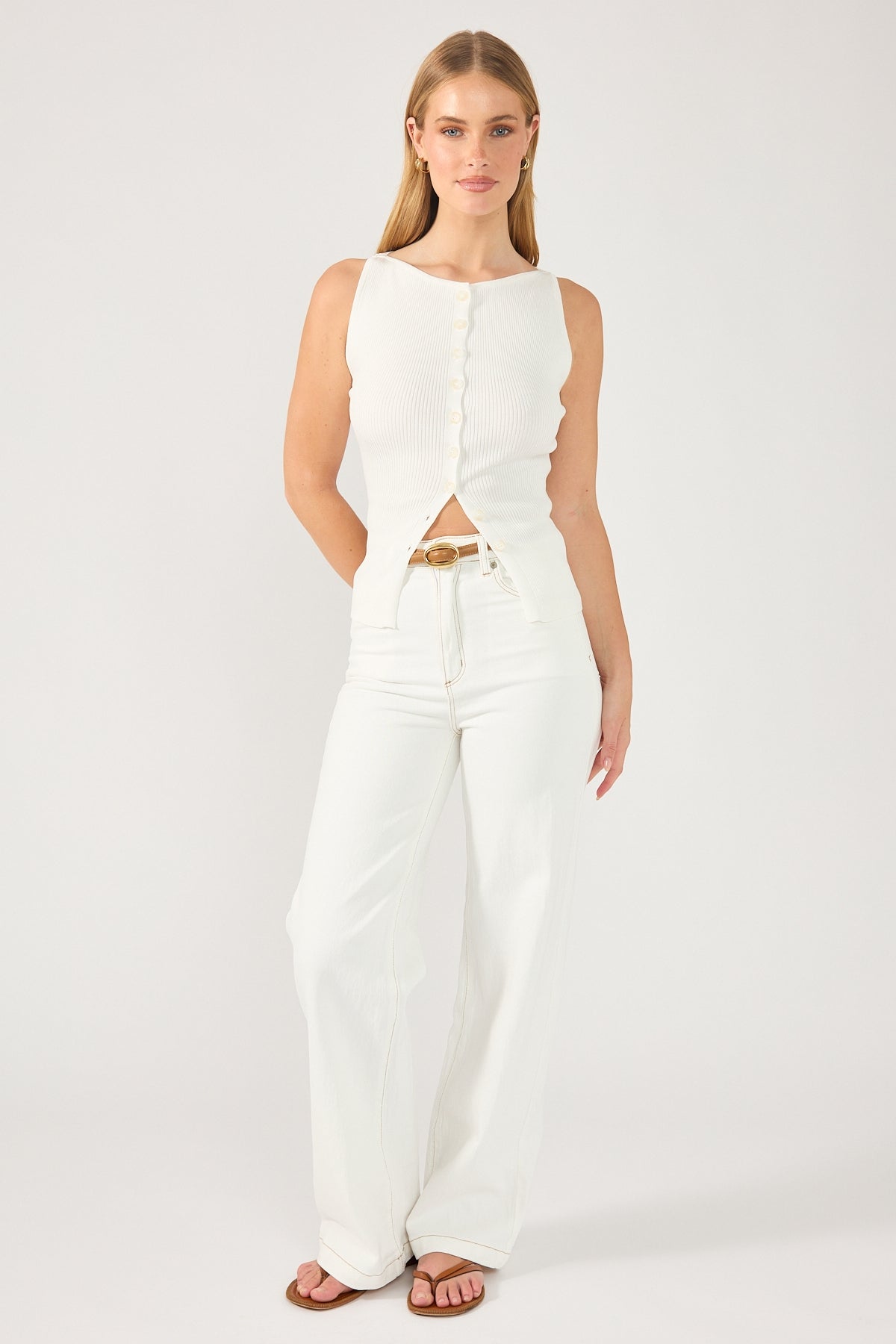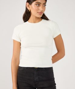 Women’s Perfect Stranger High Neck Button Up Rib Knit Top White | White