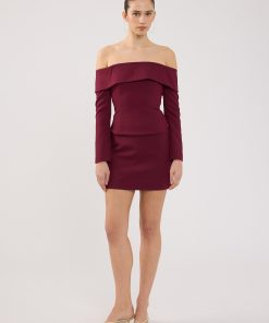 Women’s Perfect Stranger Lupa Off Shoulder Long Sleeve Top Burgundy