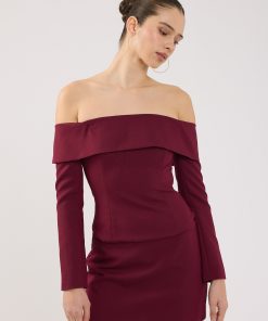 Women’s Perfect Stranger Rosh Gathered Long Sleeve Top Burgundy