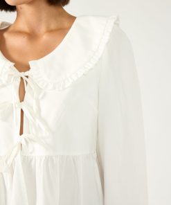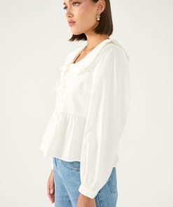 Women’s Tops Perfect Stranger Ingrid Long Sleeve Collared Blouse White